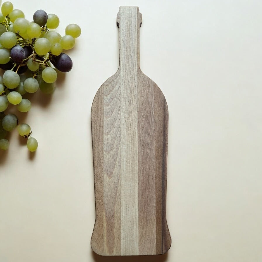 Laat je tafel spreken met deze originele snij- en borrelplank in de vorm van een wijnfles. Gemaakt van duurzaam beukenhout, afgewerkt met een natuurlijke olie die het hout beschermt en de mooie nerf extra naar voren laat komen. Dankzij de opvallende vorm is deze plank perfect voor borrels, proeverijen of als persoonlijk cadeau.